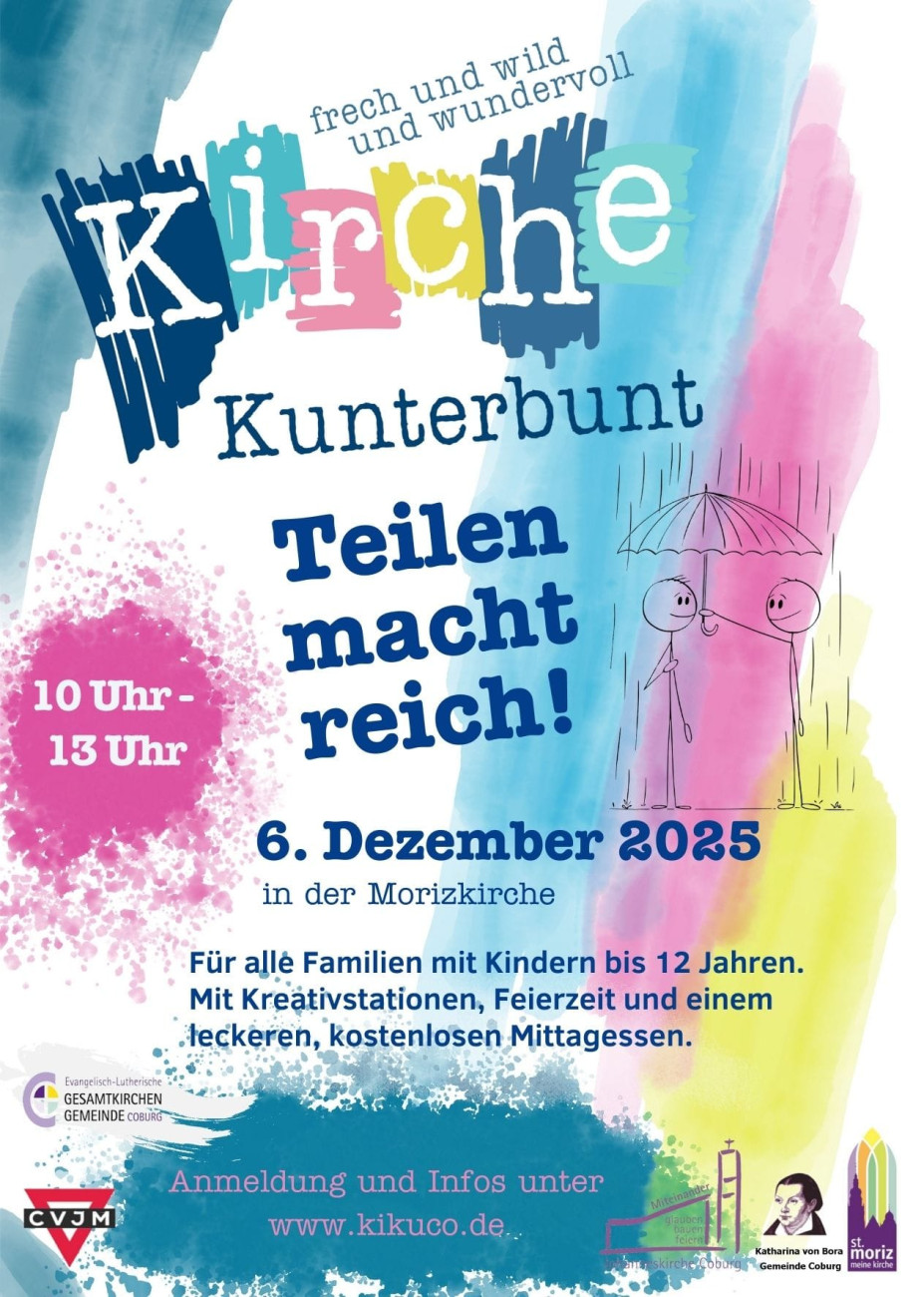 Herzliche Einladung zur nächsten Kirche Kunterbunt am 6. Dezember von 10 bis 13 Uhr in der Morizkirche!