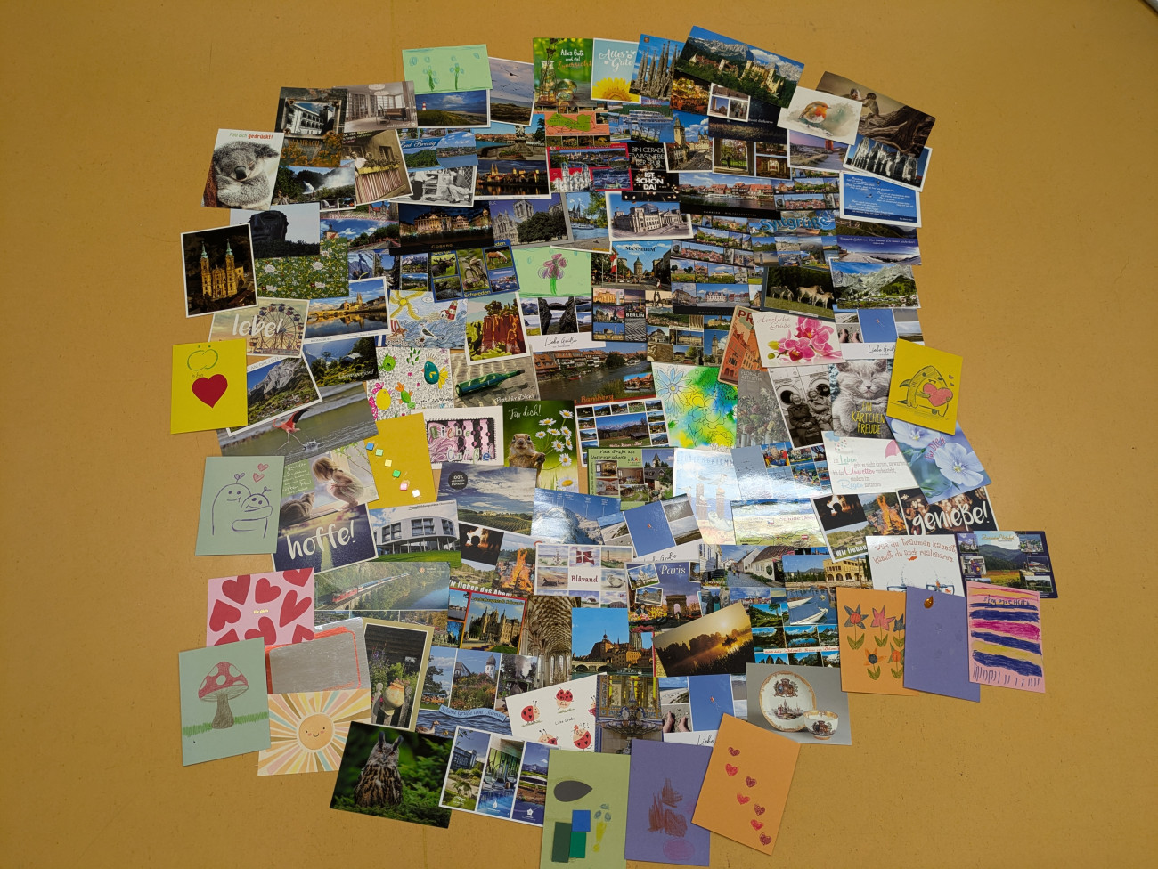 Postkarten aus nah und fern haben mich erreicht. Aus verschiedenen Städten Deutschlands, aus anderen Ländern, liebevoll selbstgebastelte und viele bunte Postkarten.